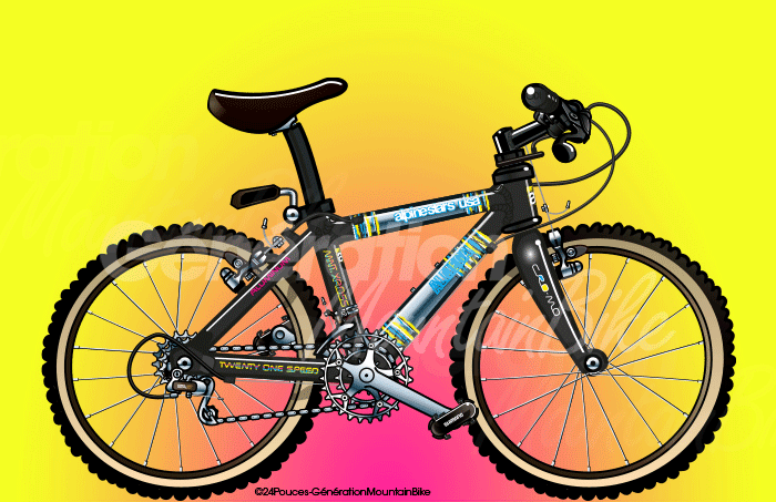 Pour le petit frère Al-Mega DX, on prend les même et on recommence, en changeant la robe noir pour du jaune fluo et en remplaçant le Deore XT par du Deore DX.