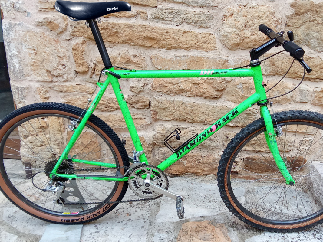 Capable de réaliser une large de gamme de vélo très complète et à tous les prix, Diamond Back garde un petit faible pour la compétition et saura produire des VTT agressifs et performants. Normal quand on porte le nom d’un redoutable serpent à sonnette. L’Arrival en 1987 en est la preuve puisque bon nombre de coureur vont se l’arracher. Cadre alu 7000, composants Suntour 9000, le ton est donné.