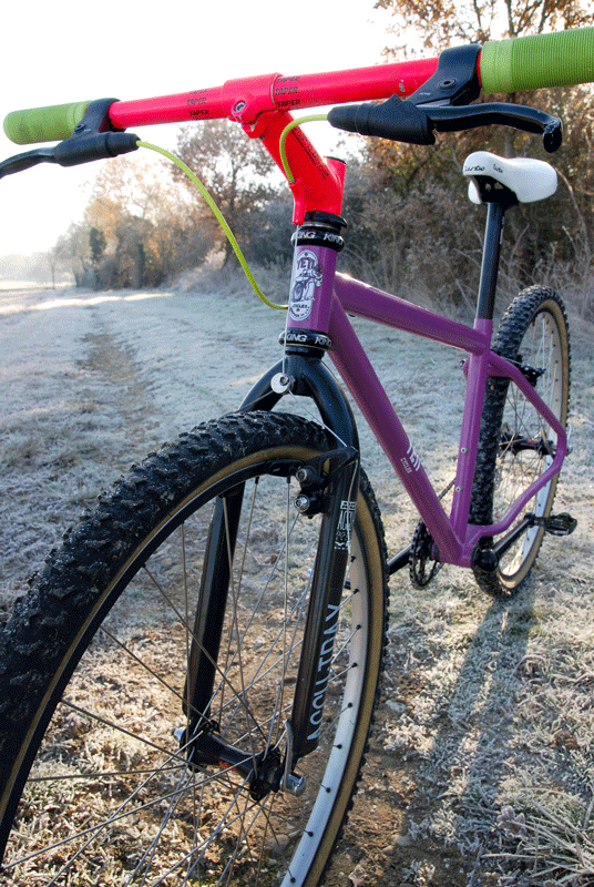 Puisqu’on vous dit que c’est un vélo de compet’. Inutile de chercher à flâner confortablement, c’est impossible. Le vélo est raide et compact. Par contre, dans les accélérations et la maniabilité, les 29″ seront à la traîne ! Le Yeti FRO est un concentré de vivacité, appellant à pédaler en danseuse comme sur un BMX : réactif, joueur mais aussi précis. Pas besoin de vérifier un réglage de suspension ou la charge de la batterie. Réduit à sa plus simple expression, le Yeti FRO est toujours prêt pour rouler. Si possible en envoyant du gros ! Fabriqué en acier cromo, le Yeti FRO n’est pas léger mais bâti pour être indestructible à l’image d’un vélo de dirt. Pourtant, c’est bel et bien un vélo de XC.